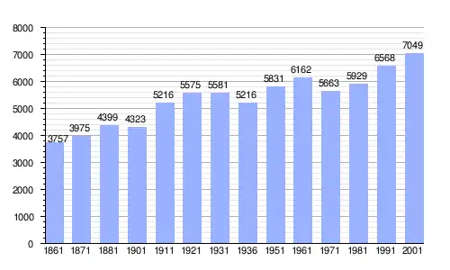 | Gráfica de evolución demográfica de Borgia entre 1861 y 2001 |