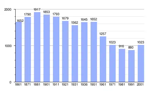 | Gráfica de evolución demográfica de Borgo San Siro entre 1861 y 2001 |