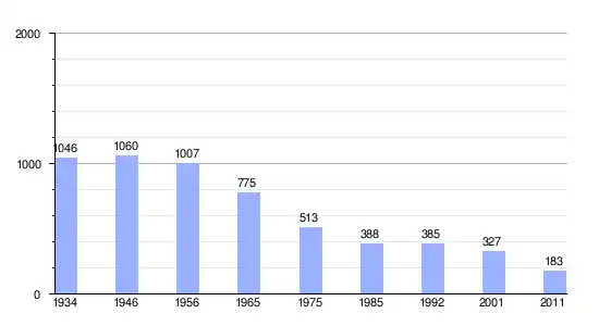 | Gráfica de evolución demográfica de Borislav entre 1934 y 2011 |