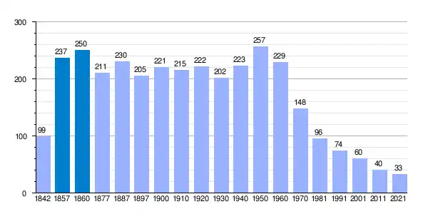 Gráfica de evolución demográfica de Borjabad[3]​ entre 1842 y 2021