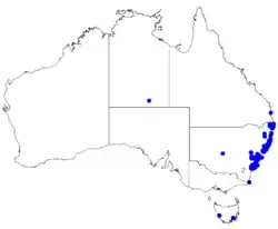 Crece en el bosque esclerófilo seco y cálido en piedra arenisca, principalmente en los distritos costeros al norte de Nowra, también se registra a partir de Nadgee en Nueva Gales del Sur.[1] [2]