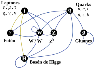 | Espín | 0 (parcialmente confirmado en 125 GeV)[5] (predicho por el modelo estándar) | |