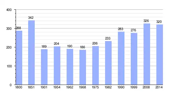 Los datos demográficos contemplados en este gráfico de la comuna de Bosnormand[4] se han cogido de 1800 a 1999 de la página francesa EHESS/Cassini, y los demás datos de la página del INSEE.[5]