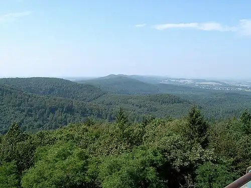 Paisaje visto desde Grotenburg (Hermannsdenkmal) en el que se puede ver el Bosque Teutónico (Teutoburger Wald).