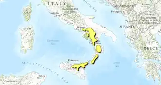 Es un bosque mixto de montaña tipo mediterráneo que ocupa 13.100 kilómetros cuadrados en los Apeninos meridionales y en las montañas de Sicilia