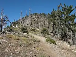 - Monte Hawkins Sur 7783 pies (2372,3 m) Mirador destruido en el incendio de Curve en 2002