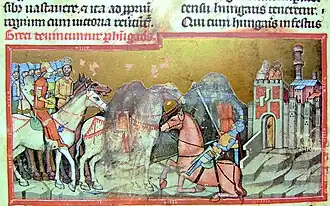 Un enorme gigante griego fue escogido para luchar por los bizantinos, mientras Botond, de contextura más bien pequeña, representaba a los húngaros. Sin embargo, a la vista de griegos y húngaros, Botond derribó al gigante y con su mayal abrió un hueco en un portón bizantino de la ciudad, intimidando al propio emperador.[1] El evento concluyó con el pago del impuesto a los húngaros.