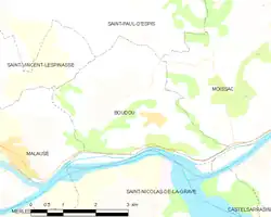 Boudou es una comuna y población de Francia, en la región de Mediodía-Pirineos, departamento de Tarn y Garona, en el distrito de Castelsarrasin y cantón de Moissac-1. No está integrada en ninguna Communauté de communes u organismo similar.