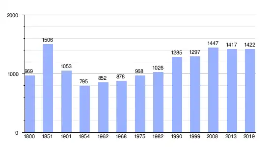 | Gráfica de evolución demográfica de Bourgogne-Fresne entre 1800 y 2019 |