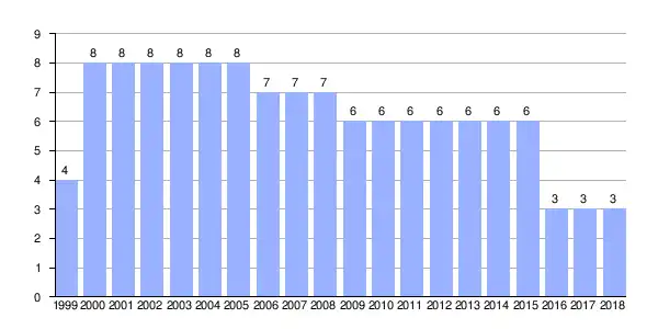 | Gráfica de evolución demográfica de Bouzoa entre 1999 y 2018 |