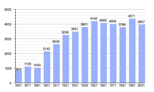 | Gráfica de evolución demográfica de Bova Marina entre 1861 y 2001 |