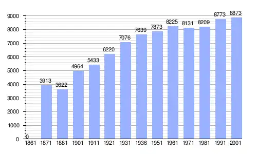 | Gráfica de evolución demográfica de Boville Ernica entre 1861 y 2001 |