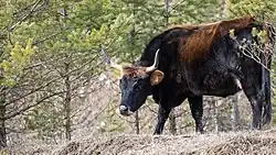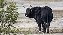 ![]() Toro de la raza taurus en la reserva natural de Lippeaue. | ||