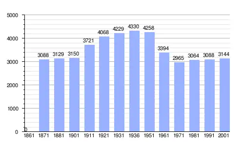| Gráfica de evolución demográfica de Bovolenta entre 1861 y 2001 |
