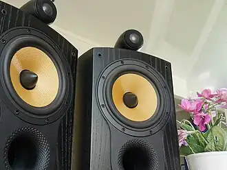 - El uso patentado de fibras de Kevlar, impregnadas con una resina endurecedora, dio como resultado los conos de altavoz amarillos distintivos de B&W a partir de 1974. Este material compuesto demostró proporcionar rigidez controlada y amortiguación interna, minimizando la distorsión, como lo determinó Fryer mediante el uso de interferometría láser en los conos de los altavoces.