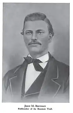 En 1863, John Bozeman, junto con un socio llamado John Jacobs, abrió Bozeman Trail, un nuevo sendero al norte de la senda de Oregón conduce a la ciudad minera de Virginia City a través del Valle Gallatin y la futura ubicación de la ciudad de Bozeman.