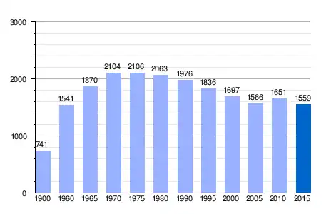 | Gráfica de evolución demográfica de Bräcke entre 1900 y 2015 |