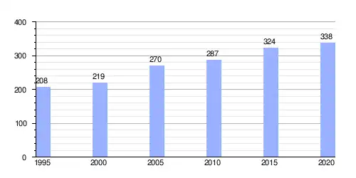 | Gráfica de evolución demográfica de Brändön entre 1995 y 2020 |