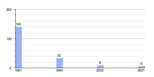 | Gráfica de evolución demográfica de Brčevo entre 1981 y 2021 |