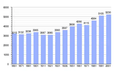 | Gráfica de evolución demográfica de Bracigliano entre 1861 y 2001 |