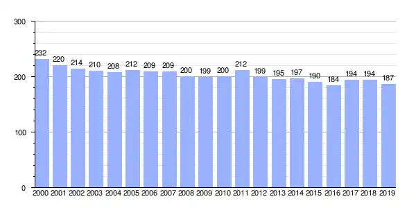 | Gráfica de evolución demográfica de Bragad entre 2000 y 2019 |