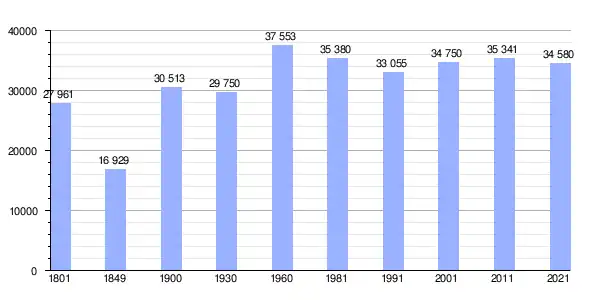 Gráfica de evolución demográfica de Braganza entre 1801 y 2021