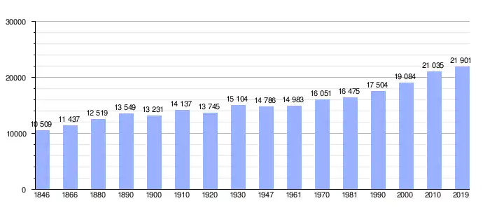 Todos los datos históricos relativos al actual municipio, el siguiente gráfico refleja su evolución demográfica, incluyendo municipios después de efectuada la fusión el 1 de enero de 1977.