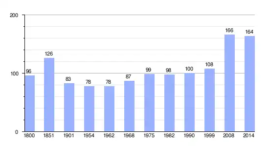 | Gráfica de evolución demográfica de Branville-Hague entre 1800 y 2014 |