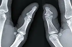- ↑ Temtamy, Samia A; Aglan, Mona S (13 de junio de 2008). «Brachydactyly». Orphanet Journal of Rare Diseases 3: 15. ISSN 1750-1172. PMC 2441618. PMID 18554391. doi:10.1186/1750-1172-3-15. Consultado el 9 de marzo de 2022.