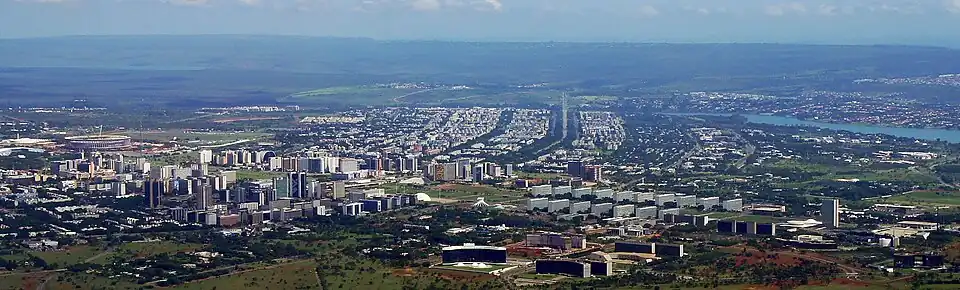 Brasilia (en portugués Brasília) es la capital federal de Brasil y la sede del Gobierno del Distrito Federal, localizada en la región Centro-Oeste del país. Tiene una población de 3 015 268 habitantes, según estimaciones de 2019 del Instituto Brasileño de Geografía y Estadística,[1] lo que la convierte en la tercera ciudad del país por población. Además, tiene una población de 4 284 676 en la zona metropolitana.[2] Es sede del Gobierno federal, conformado por los tres poderes de la república (ejecutivo, legislativo y judicial).