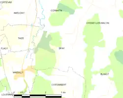 Bray es una población y comuna francesa, en la región de Borgoña, departamento de Saona y Loira, en el distrito de Mâcon y cantón de Cluny.