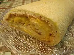El brazo de gitano es un postre relleno que se arrolla en forma de cilindro.[1] Se elabora con una masa genovesa cubierta de una mermelada o crema (nata, moca, chocolate) y luego enrollada. Puede estar decorado con una cobertura de azúcar glas, chocolate, glaseado, quemada, merengue o nata, entre otros.