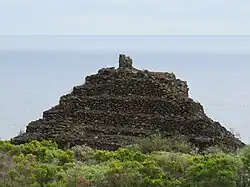 Torre de VandamaTorre de Vandama: majano de piedras de forma piramidal situado en la zona de Vandama, junto a la carretera del aeropuerto. Debe su nombre al apellido flamenco Van Damme, comerciantes belgas que se instalaron sobre todo en La Palma, Tenerife y Gran Canaria. Aunque existen referencias a las pirámides como lugares sagrados de los benahoaritas, lo más probrable es que esta construcción sea producto del despedregamiento del territorio para aprovechamiento agrícola y posterior amontonado de las piedras.[47][71]