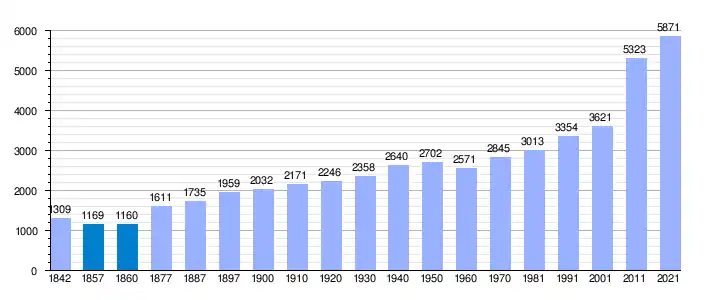 Gráfica de evolución demográfica de Breña Baja[40] entre 1842 y 2021