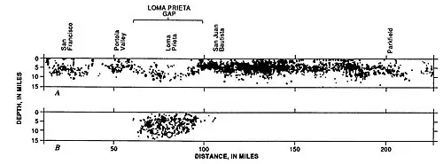 - Brecha de Loma Prieta en Estados Unidos, en la que antes del terremoto de 1989, este segmento del sistema de la falla de San Andrés registró mucha menos actividad sísmica que otras partes de la falla. El sismo principal y las réplicas del evento se produjeron dentro de esta brecha sísmica.[15]