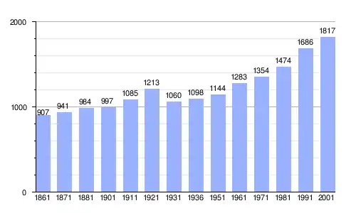 | Gráfica de evolución demográfica de Brenna entre 1861 y 2001 |