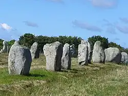 La Bretaña neolítica se caracteriza por una importante producción megalítica y yacimientos como el de Quelfénnec. A veces se la designa como la 'zona central' de la cultura megalítica.[18] A los monumentos más antiguos, los Cairn, siguieron las tumbas principescas y los alineamientos de piedras. El departamento de Morbihan, en la costa meridional, cuenta con una gran parte de estas estructuras, entre las que destacan las piedras de Carnac y el Menhir Roto de Er Grah, en el megalitismo de Locmariaquer, la mayor piedra erigida por los neolíticos.