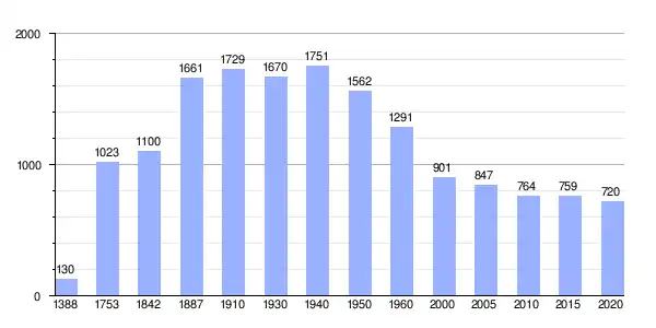 | Gráfica de evolución demográfica de Bretoña (parroquia) entre 1388 y 2020 |