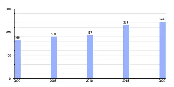 | Gráfica de evolución demográfica de Bretoña (villa) entre 2000 y 2020 |