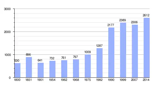 | Gráfica de evolución demográfica de Bretteville-l'Orgueilleuse entre 1800 y 2014 |