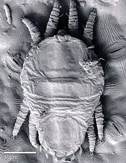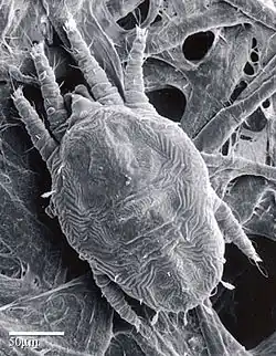 - ↑ Whitfield, John (2001). «Single mite female». Nature. doi:10.1038/news010705-1.