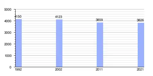 Hasta 2021 la población era de 3826 habitantes,[1] con una densidad de población de 40,44 habitantes por kilómetro cuadrado.[1]