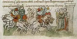 La Saga de Eymund (escrito en el siglo XIII) muestra una distinta relación entre Pólotsk y Kiev. Afirma que luego de la victoria sobre Sviatopolk, Yaroslav demandó a Briachislav cederle parte de sus territorios. Este último rehusó y llevó a sus tropas hasta la frontera de su reino. Para librar la guerra Yaroslav manda a Ingegerd quien había sido tomada prisionera por Briachislav y actuaba como mediadora en las negociaciones entre Yaroslav y Briachislav. Las condiciones de las negociaciones mencionadas son las siguientes: Briachislav acepta a Kiev, Yaroslav se queda con Nóvgorod mientras es reconocido como el konung de Garðaríki, mientras Eymund el mercenario, es premiado con Pólotsk. Luego de poco tiempo Briachislav muere y Yaroslav obtiene todos sus territorios. Numerosos historiadores (O. Senkovsky y M. Sverdlov) razonan que Briachislav ganó sus derechos en Kiev y Eymund en Pólotsk ambos asignados por el konung de Garðaríki.