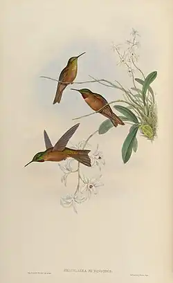 - ↑ Gill, F., Donsker, D. & Rasmussen, P. (ed.). «Hummingbirds». IOC – World Bird List (en inglés). Consultado el 1 de octubre de 2024. Versión/Año: 14.1./2024.