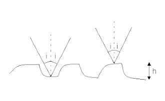 La rugosidad de la superficie en un rango de micrómetros influye en los niveles de reflectancia especular. El diagrama de la derecha muestra la reflexión con un ángulo sobre una superficie rugosa con una altura de rugosidad característica . La diferencia de trayectoria entre los rayos reflejados desde la parte superior e inferior de las protuberancias de la superficie es:
