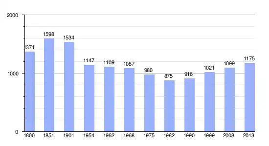 Los datos demográficos contemplados en este gráfico de la comuna de Brion[4] se han cogido de 1800 a 1999 de la página francesa EHESS/Cassini, y los demás datos de la página del INSEE.[5]