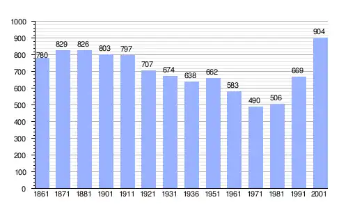 | Gráfica de evolución demográfica de Brissogne entre 1861 y 2001 |