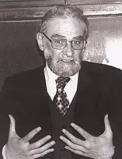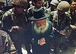 Rabino Tzvi Yehuda Kook (1891-1982), fue un rabino y líder del movimiento del sionismo religioso. Sus enseñanzas religiosas incluyen el identificar al moderno Estado de Israel como el cumplimiento de las profecías de los profetas del judaísmo, a pesar de su naturaleza secular. El Rabino Tzvi Yehuda Kook, formó e instruyó a una nueva generación de líderes rabínicos del sionismo religioso. Zvi era el único hijo del Rabino Abraham Isaac Kook, se desempeñó como director de la Yeshivá Mercaz HaRav Kook y como editor de muchas de las obras de su difunto padre. Zvi continuó el legado de su padre en el movimiento del sionismo religioso. Zvi sentía un gran amor por el Pueblo de Israel (Am Israel), y fue fundamental para alentar a los colonos judíos a establecerse en todas las áreas de la Tierra de Israel (Eretz Israel) liberadas por las FDI durante la Guerra de los Seis Días.[10][11]