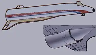 Tal como se diseñó, habría tenido 62 m, 12,8 m, un diámetro de fuselaje de 5,7 m y una envergadura de 19,7 m.[8] Presentaba un diseño de ala que se derivaba del utilizado en el Concorde. Su gran área se tradujo en una carga alar relativamente baja, lo que habría resultado en temperaturas de reentrada más bajas (que nunca se elevarían por encima de 1400 °C).[8] Construido con materiales poliméricos reforzados con fibra de carbono, no habría sido necesario el uso de baldosas aislantes similares a las que componen el sistema de protección térmica del transbordador espacial. El tren de aterrizaje guardado internamente habría sido demasiado pequeño para soportar el peso del cohete completamente cargado, por lo que los aterrizajes de emergencia habrían requerido que se descargara el combustible.[8]