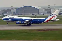 ![]() Boeing 747-8F de Global Supply Systems, operando para British Airways World Cargo, aterrizando en el Aeropuerto de Fráncfort del Meno (2011) | ||